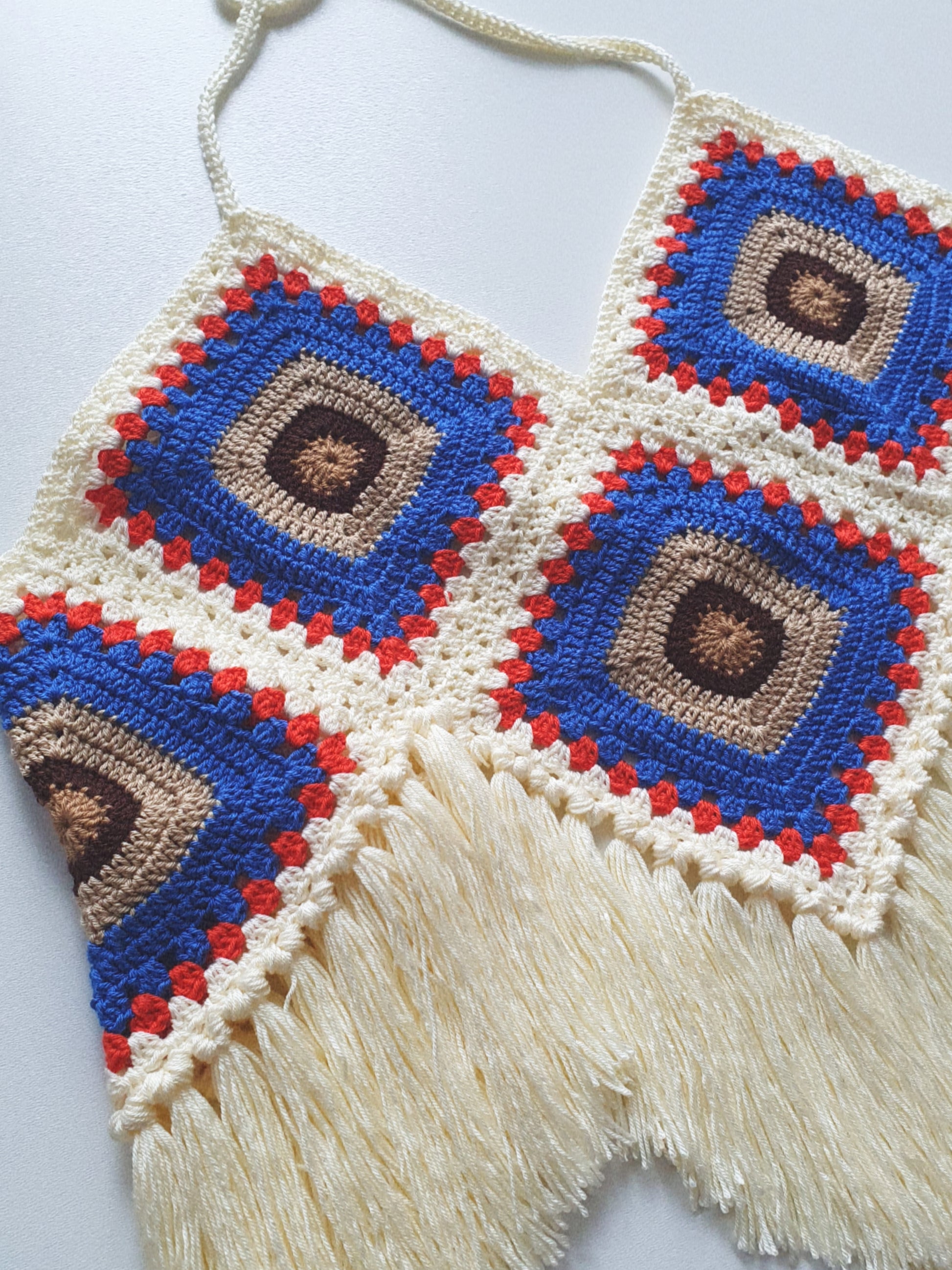 The Penelope crop top is a handmade crochet top perfect for summer festivals and warm nights. Featuring fun, bright colors and delicate tassels, this Boho-style top is sure to turn heads. The crop top is made from high-quality materials, ensuring comfort and style all season long.